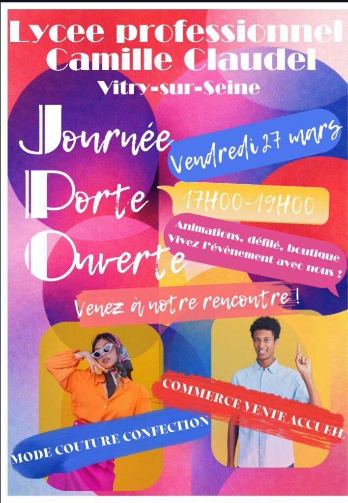 Le lycée professionnel Camille Claudel de Vitry-sur-Seine organise sa Journée Portes Ouvertes le vendredi 27 mars de 17h à 19h. Au programme : animations, défilé, découverte des ateliers et rencontre avec les équipes pédagogiques. Les visiteurs pourront explorer les formations, échanger avec les élèves et découvrir les projets réalisés au sein de l’établissement.