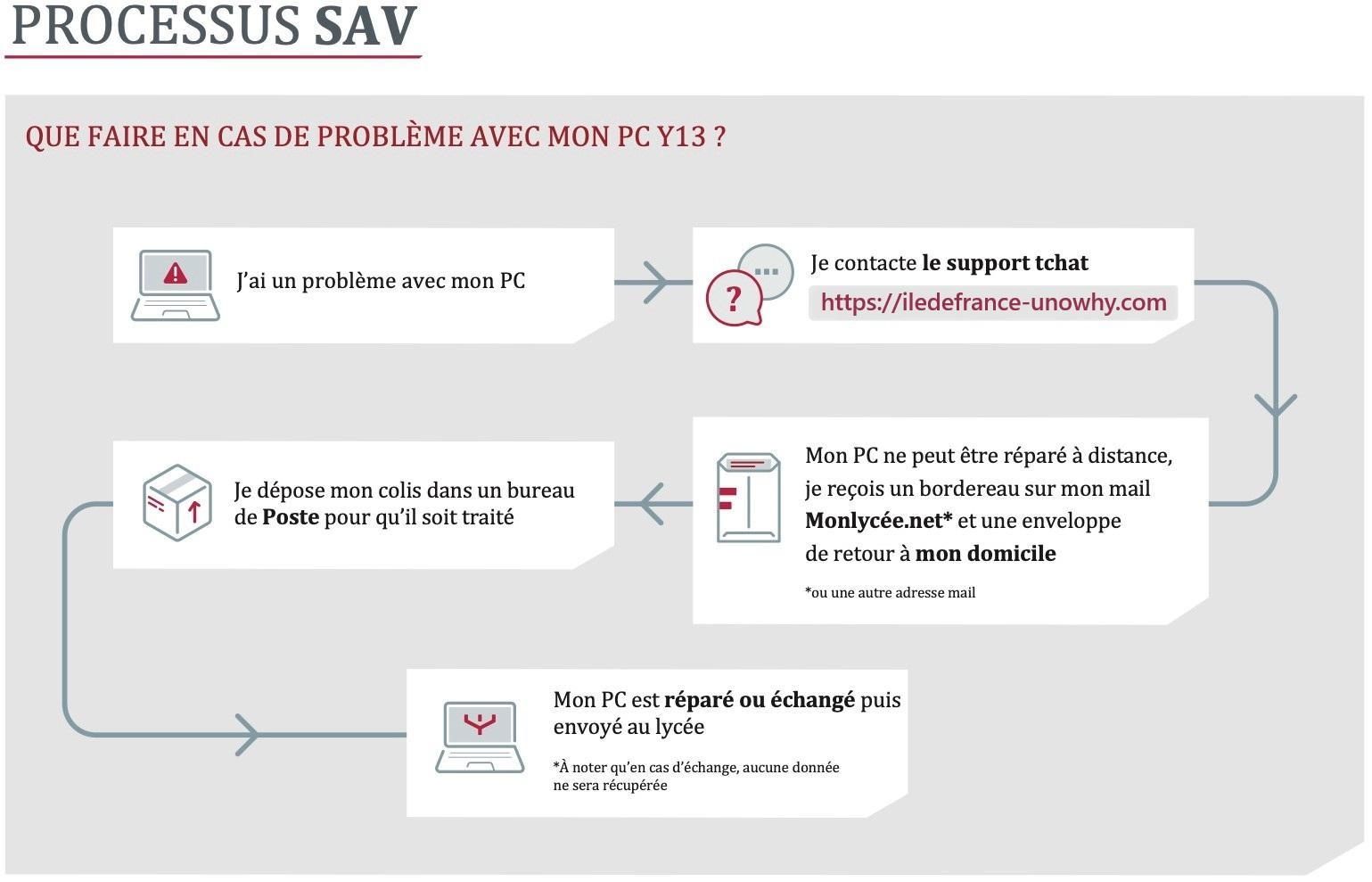 Si votre PC nécessite une prise en charge SAV, l’envoi du matériel peut se faire auprès de l’intendance du lycée, sinon la procédure peut également être réalisée directement par vous-même.